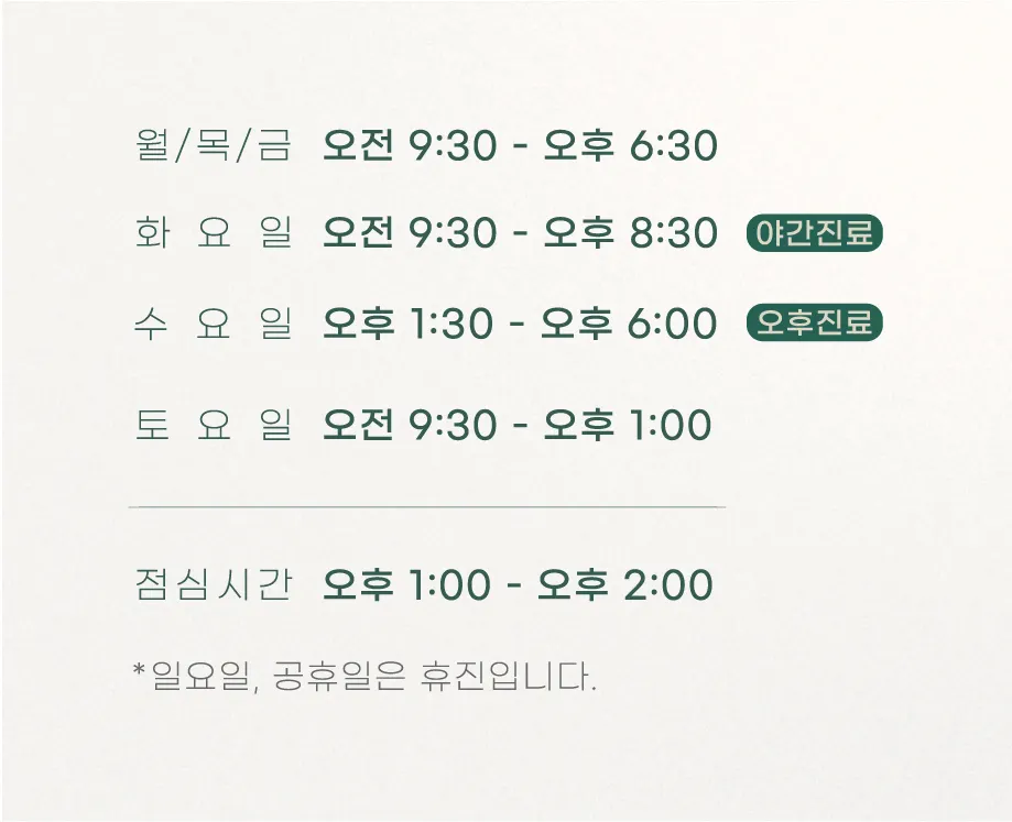 당일 진료를 원하시는 분은 전화 문의 시, 빠르게 상담 안내를 도와드리겠습니다.