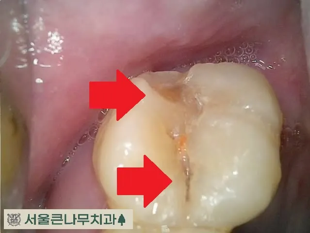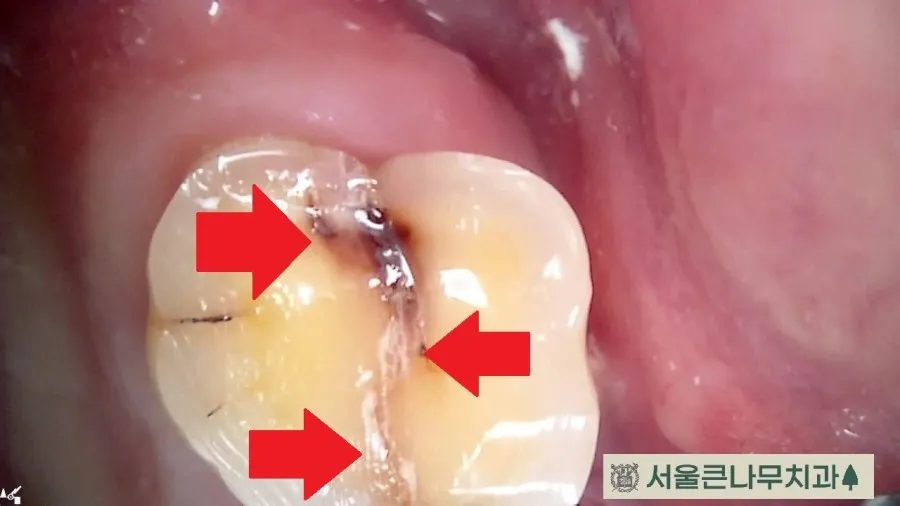 안을 들여다보니 생각보다 더 큰 충치와 크랙이 진행되어있었습니다.