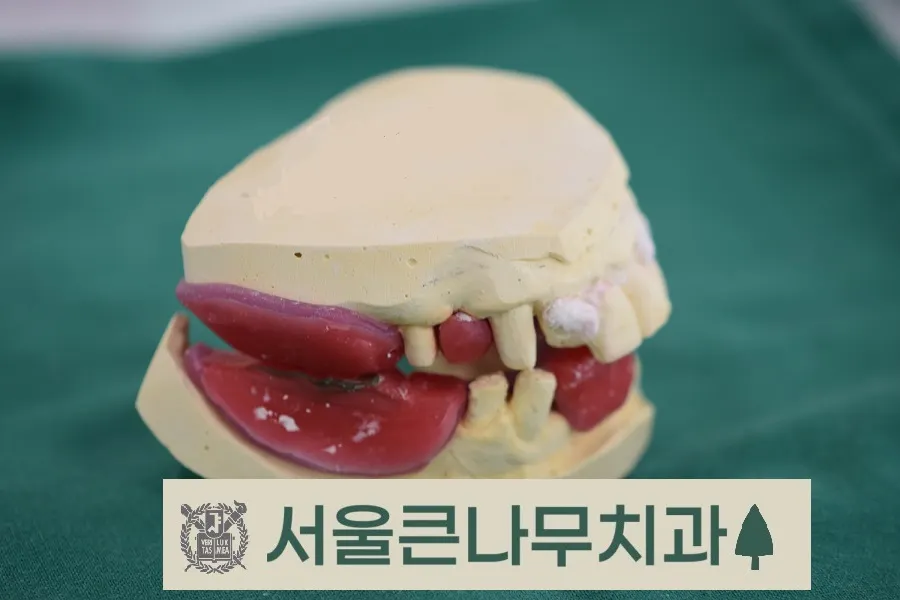 이렇게 보철까지 다 올려주고 나면 부분틀니 제작에 들어가기 시작합니다.