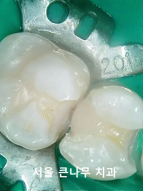최종적으로 인레이 접착을 완료한 상태입니다. 감쪽같이 마무리되었습니다