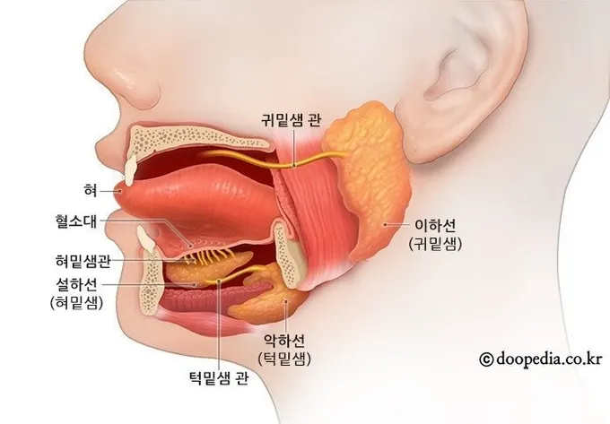 침샘-이하선(귀밑 샘), 악하선(턱밑샘), 설하선(혀밑샘)에 나타나는 염증성, 감염성 질환을 침샘염이라 말합니다.
