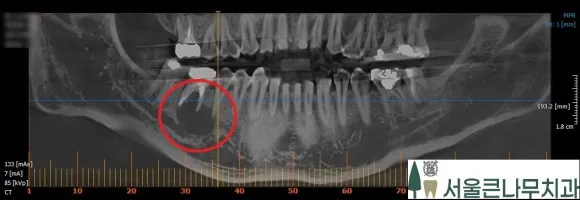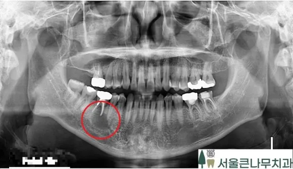 쉽게 말하면 낭종은 염증 주머니라고 생각하면 됩니다. 옆 파노라마 사진을 보면 바로 확인할 수 있습니다.